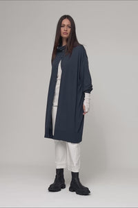 Long line shapes are a favourite for taylor silhouettes, especially cardigans. The Pinned Coat is a relaxed, mid-length shape with a hood for added detail. This fashion-forward, oversized jacket offers a relaxed fit. Featuring an exaggerated drop shoulder line, curved hemline, and generous hood. For ultimate comfort and versatility, wear with our Stitched Lucent Hoodie and a chunky sneaker.