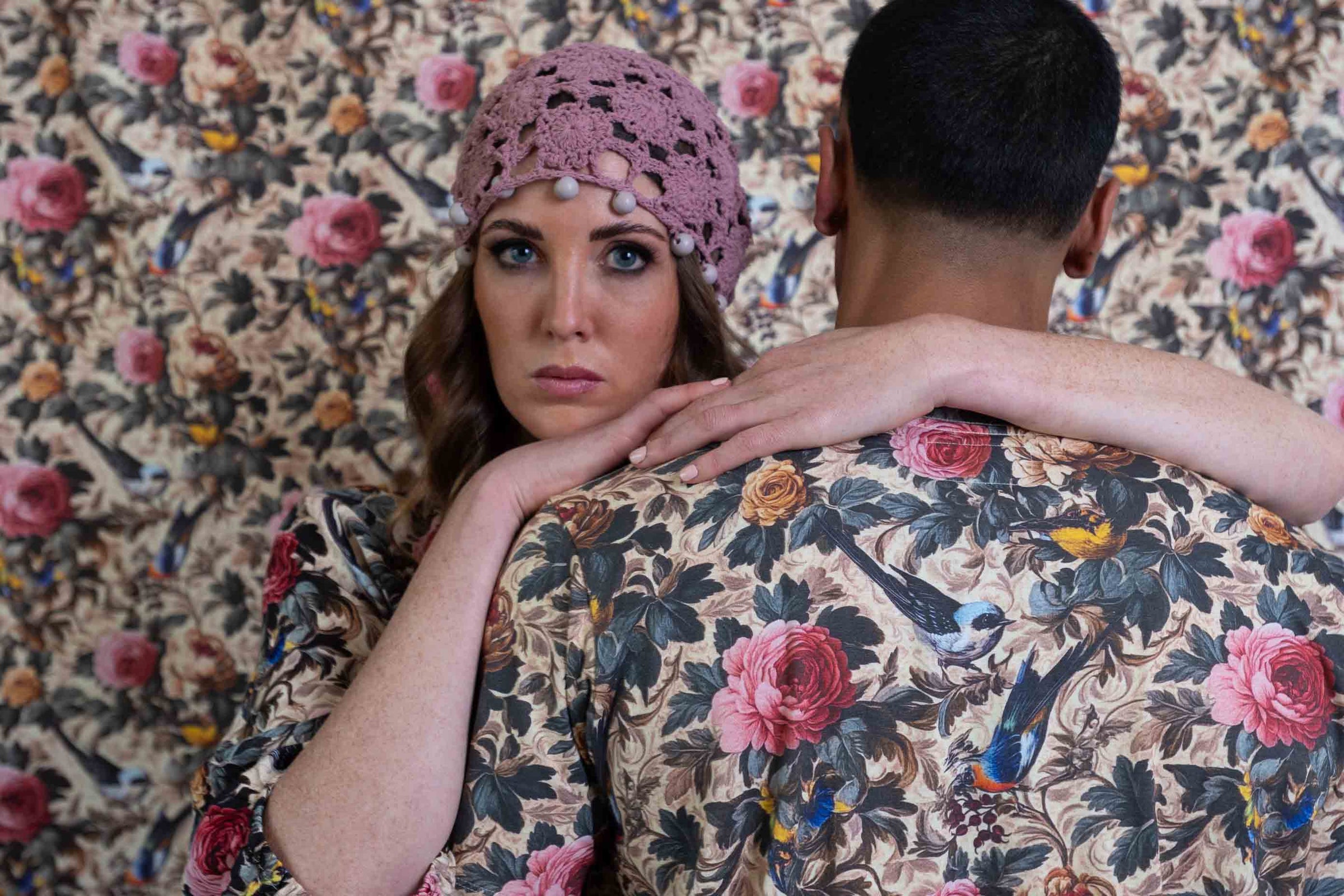 The exclusive Sheryl May Rosehaven print features her signature birds and peonies.