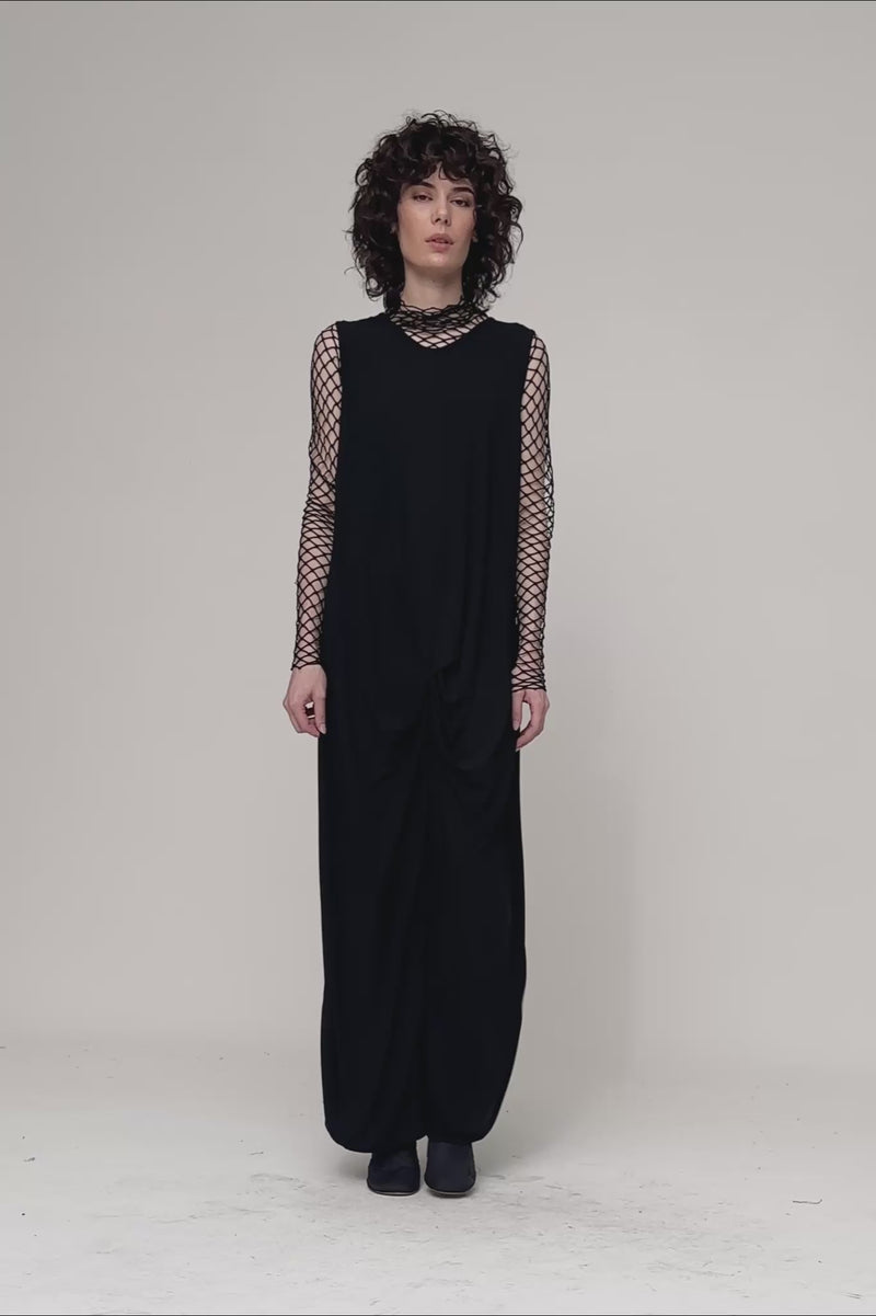 Discover effortless statement dressing with the Journey Dress, a fluid silhouette defined by soft drape and considered volume. The relaxed column shape falls beautifully through the body, finished with draped details that pull together in the center of the dress. Featuring a sculpted hem with subtle cocooning to shift easily from day to occasion.