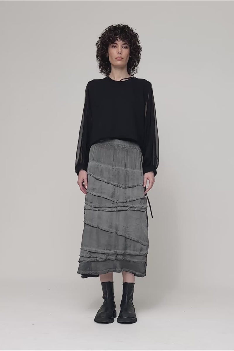 Inspired by the signature taylor Uphold Top, the Contrast Uphold Top reimagines a familiar silhouette with softened transparency and considered proportion. A relaxed, cropped body is paired with sheer sleeves, introducing lightness and movement while maintaining structure through the core.
