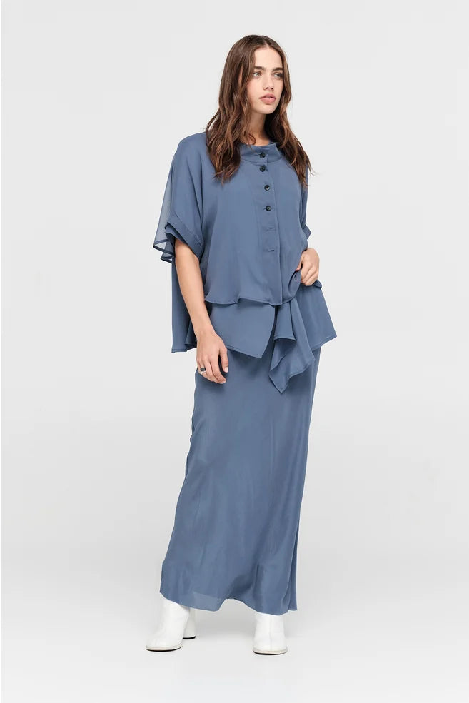 Light as air and rich in detail, the Sheer Accent Jacket is a layering piece designed to elevate both everyday and occasion dressing. Crafted in 100% silk, its sheer composition offers subtle movement, while the soft contrast panelling grounds the silhouette. With the option to be worn in reverse, this piece adapts effortlessly to your styling mood - whether as a hero piece over tonal layers or over your favourite event piece giving coverage to the arms.